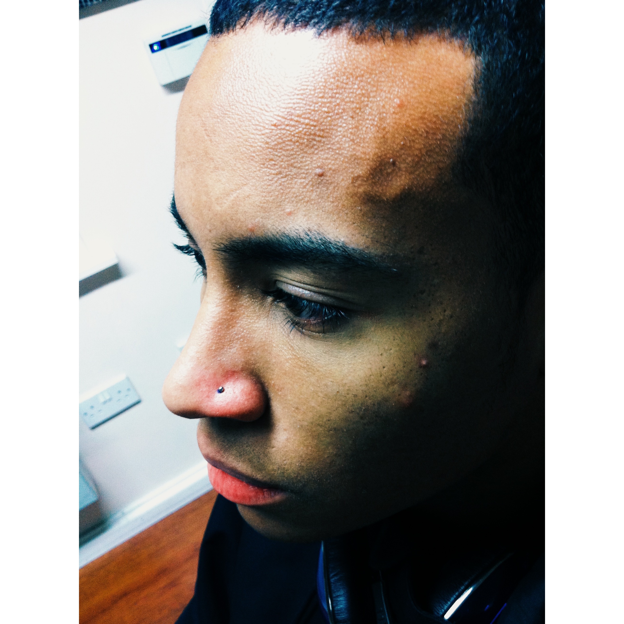 Nose April 21, 2014 — Leave a comment Dexter’s Nose Piercing Dexter’s nose piercing w/plain ball titanium stud. Share this: Click to share on X (Opens in new window) X Click to share on Facebook (Opens in new window) Facebook Like Loading...
