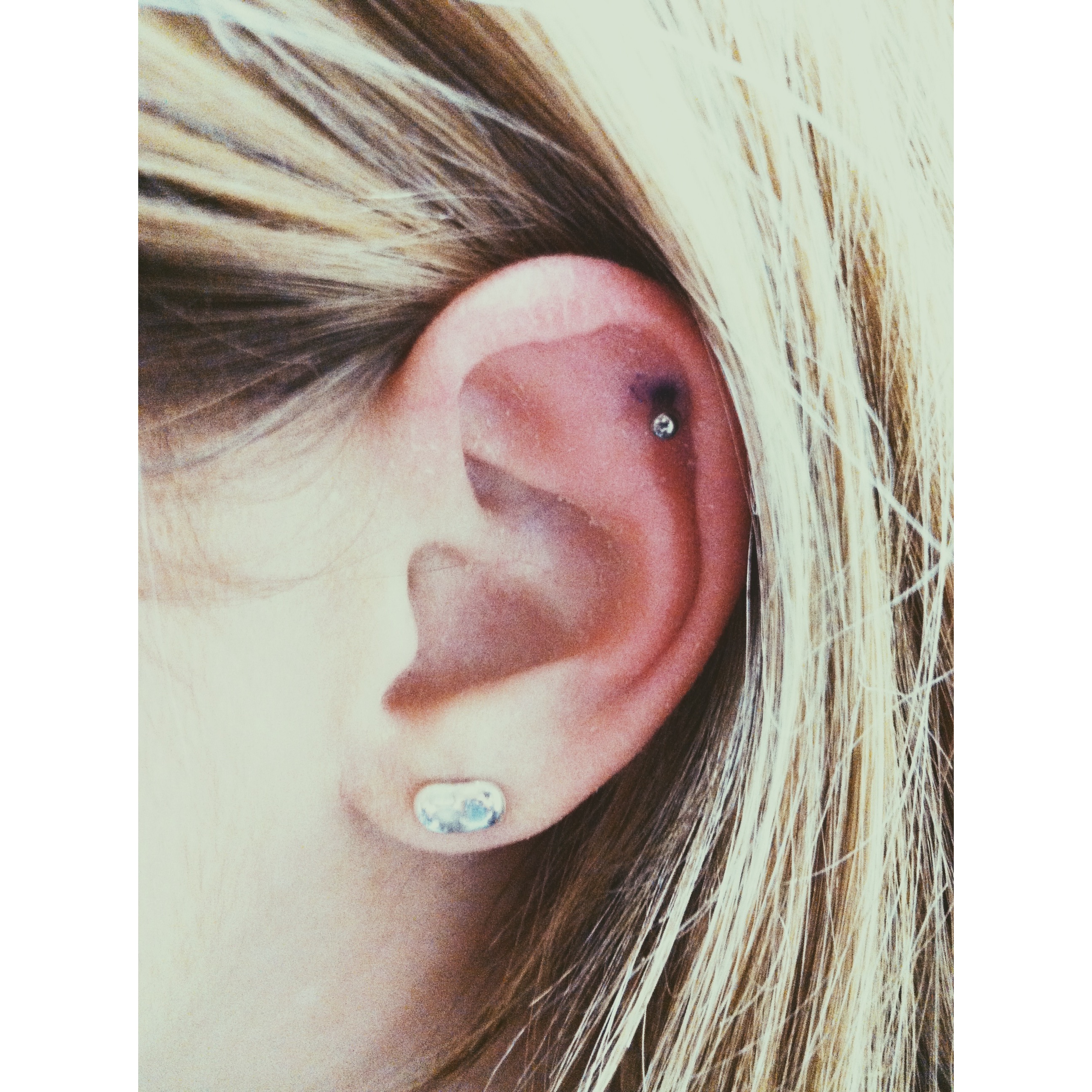 Top Ear April 22, 2014 — Leave a comment Top Ear Piercing Top ear piercing w/1.2mm x 8mm titanium bar. Share this: Click to share on X (Opens in new window) X Click to share on Facebook (Opens in new window) Facebook Like Loading...