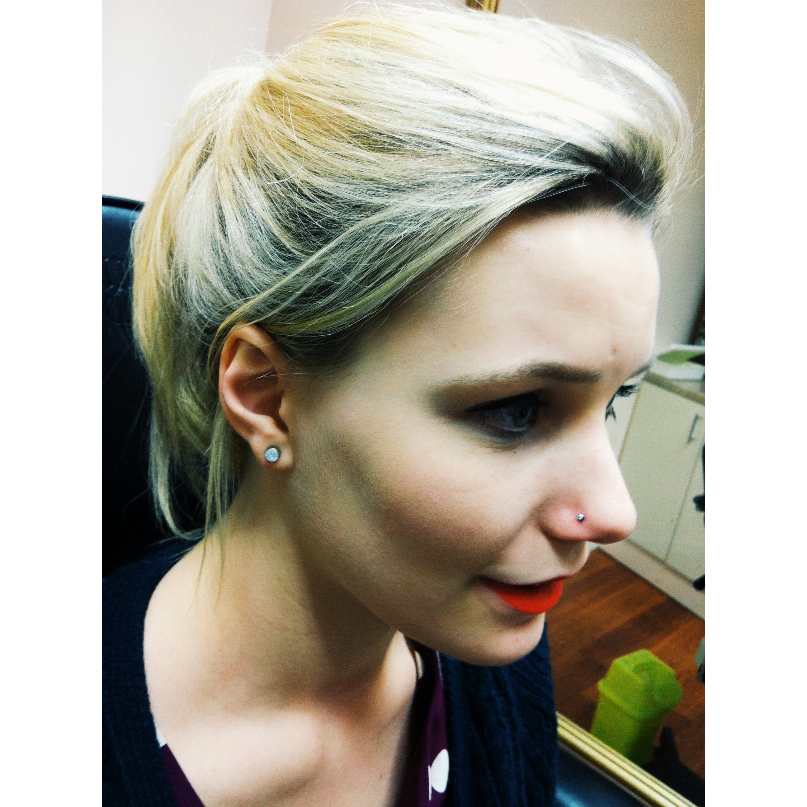 Nose April 30, 2014 — Leave a comment Cathy’s Nose Piercing Cathy’s nose pierced w/1.2mm clear gem titanium nose stud, in the new studio @ Shiva Piercings, Greenwich; London. Share this: Click to share on X (Opens in new window) X Click to share on Facebook (Opens in new window) Facebook Like Loading...