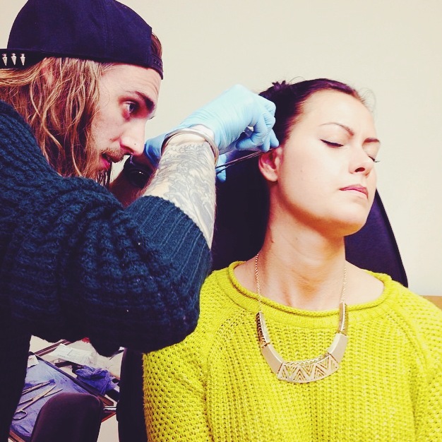 Big part of what I do, is loving meeting awesome new people on a day to day basis; it truly takes all sorts in the big smoke. I get filmed more often than not, carrying out my work from watching friends and family. Here’s Chloe’s inner pinner pierced w/1.2mm x 8mm titanium labret bar; with markings for a couple more once all is healed. Thanks to her fella Tom for the sweet money shot! Lovely couple and either my customers all tend to be rock ‘ard n’ kool as ice; or I am indeed a gentle gentleman!