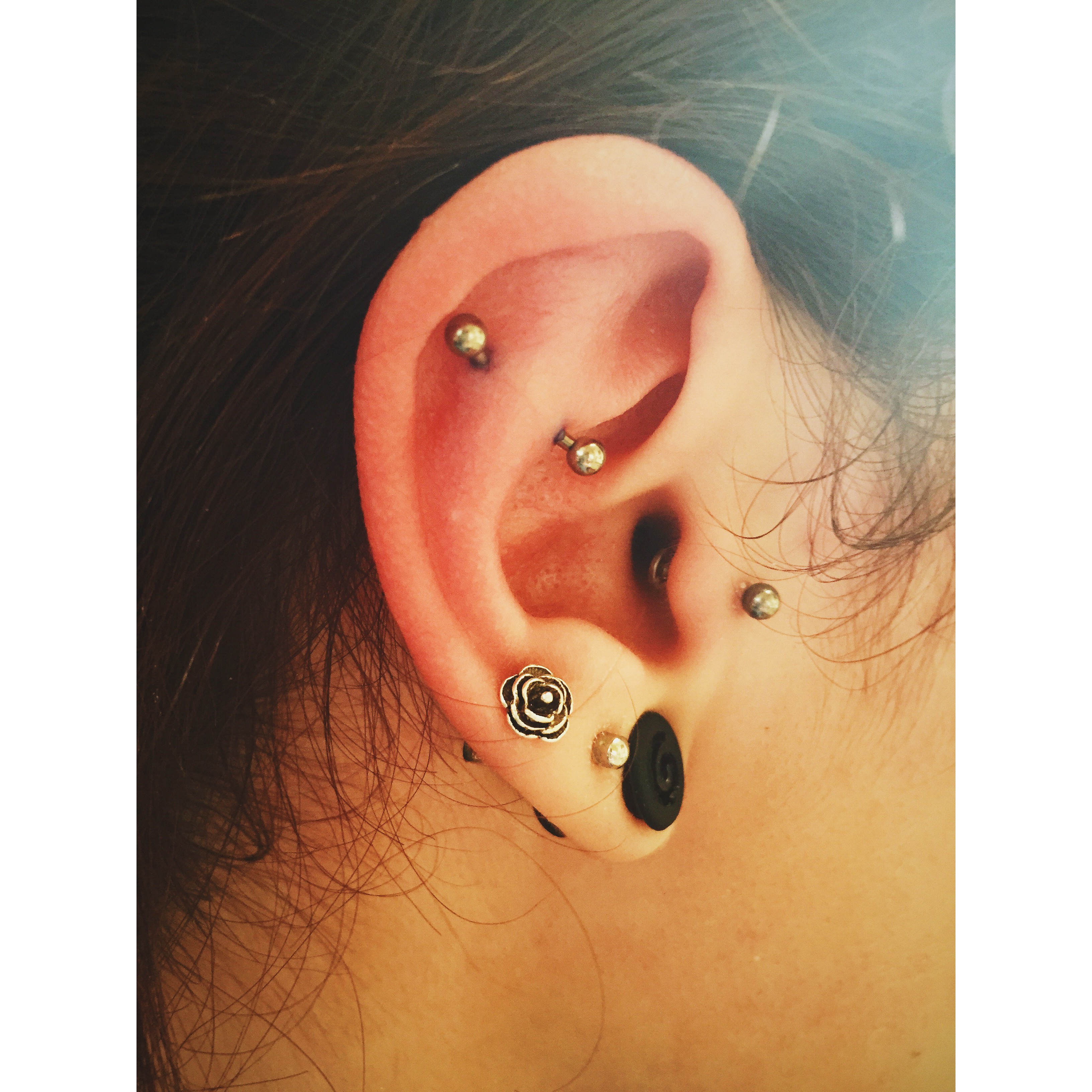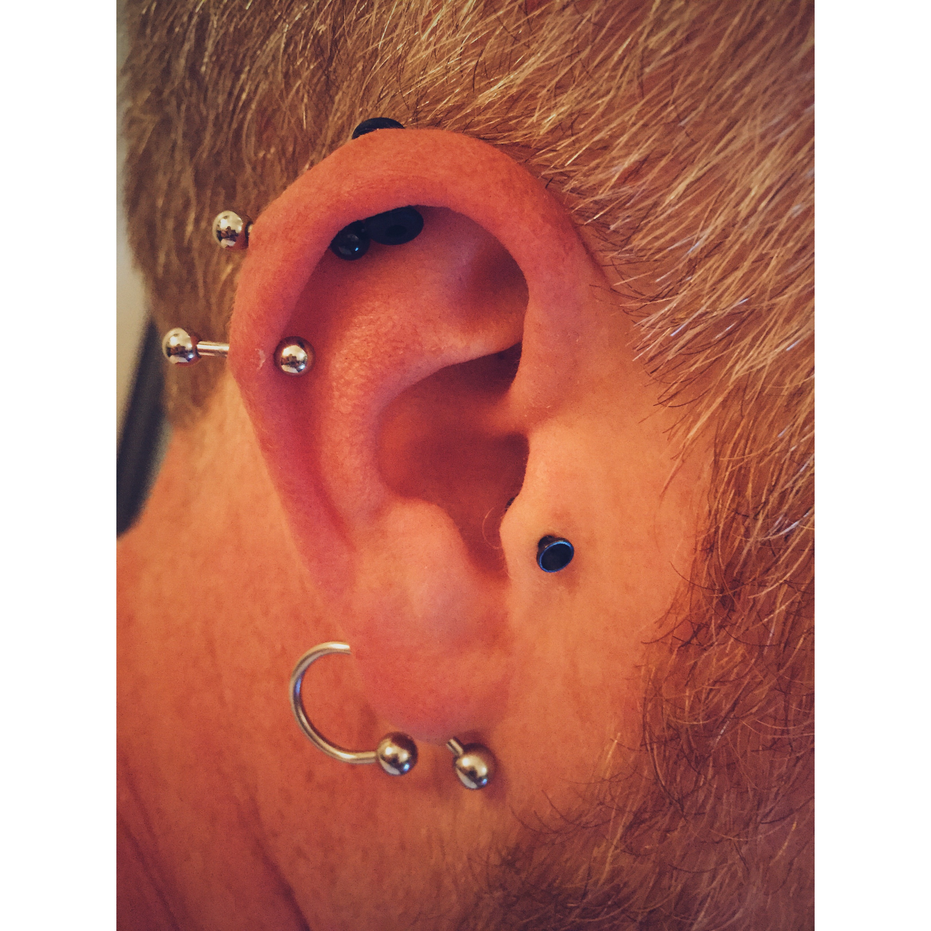 Decorated in disco! Various ear work on the lovely Lisa including a double conch, tragus, helix and third lobe piercings, pierced over the months and years @ Shiva. As always, it is the continued level of trust, confidence and appreciation that makes piercing people such a sacred privilege. Thanking all of you!