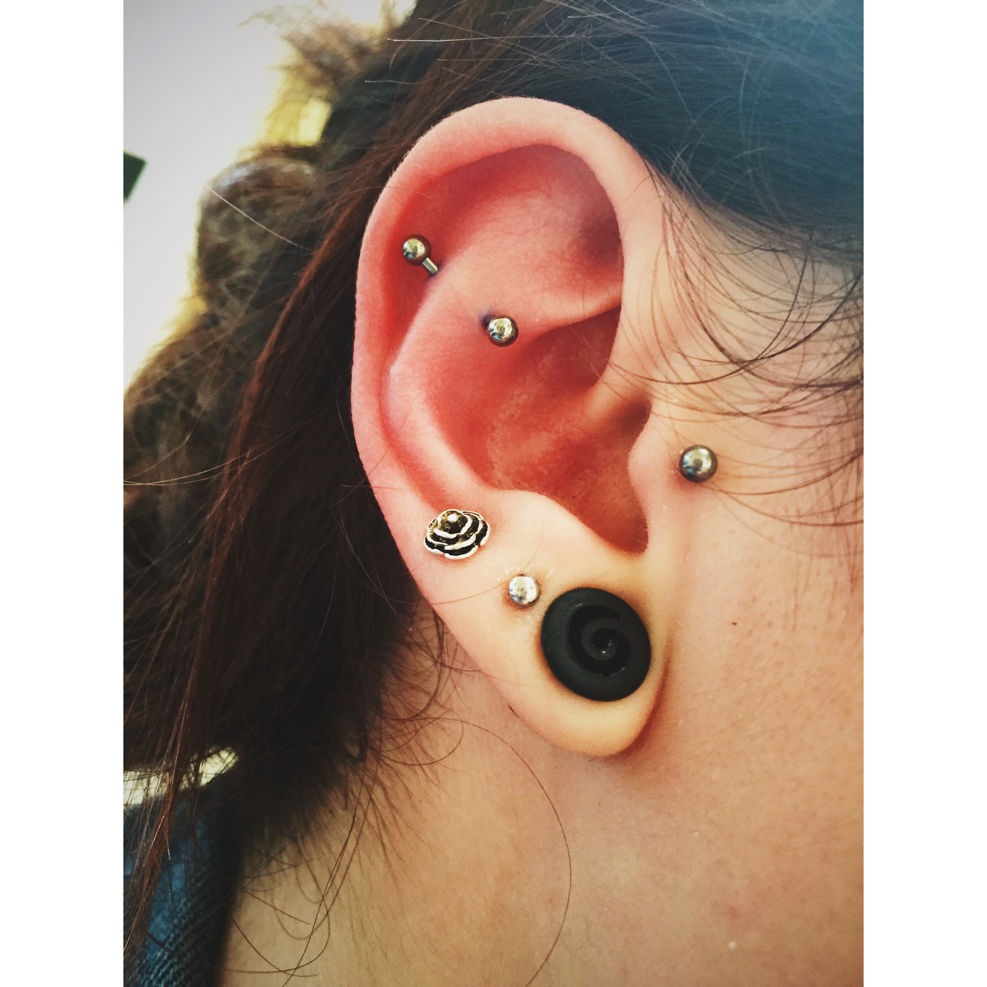 Lisa’s Double Conch, Tragus, Helix & Third Lobe Piercings