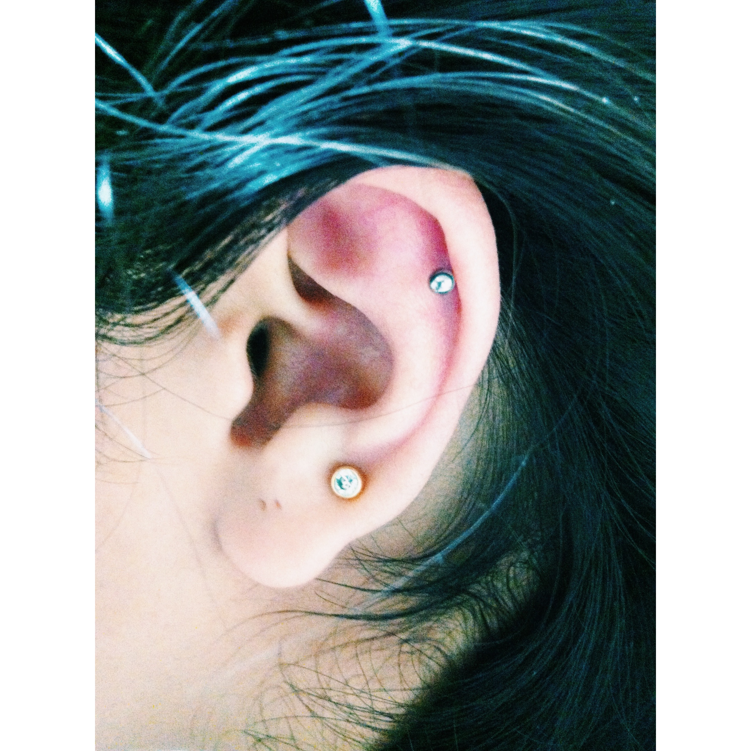 Top Ear Piercings April 21, 2014 — Leave a comment Left Top Ear Piercing Right Top Ear Piercing We did the left ear in the morning w/1.2mm x 8mm titanium bar, and the right ear in the afternoon of the same day…