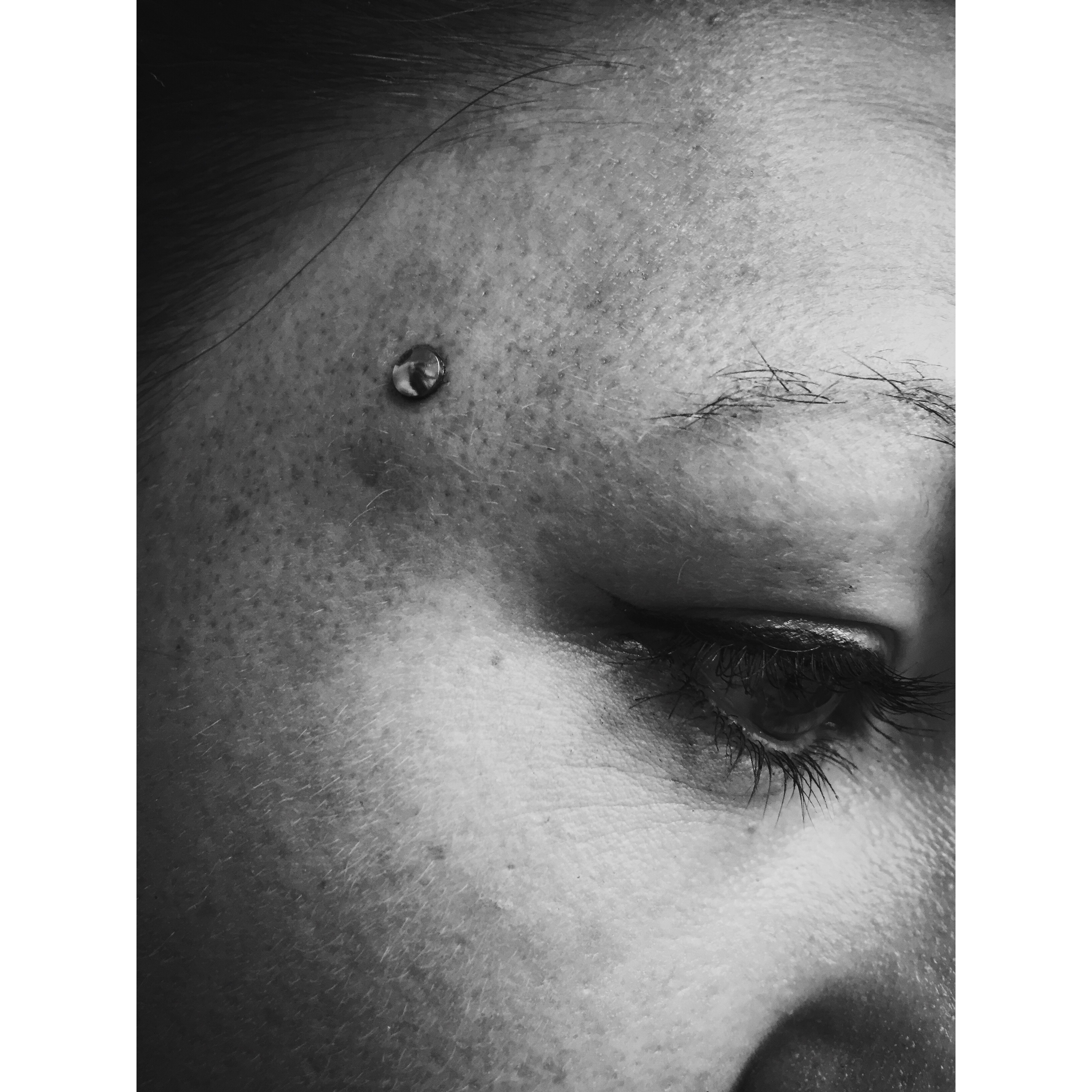 Was a pleasure and a lot of fun when Chelsea requested a microdermal anchor piercing on her temple (side of the face.) Chelsea had previously had this piercing procedure performed twice on either side of her forehead (each temple.) The scar around half an inch south of the dermal had been done before in Philly and Chelsea was more than happy with it for around three years before it grew out. She had a second done on the left side, elsewhere also; which never took (settled) and only lasted a few months. Chelsea was really happy with the results as was I and it is a constant buzz meeting so many wonderful people doing what I do in the studio at Shiva.