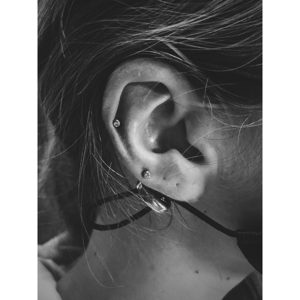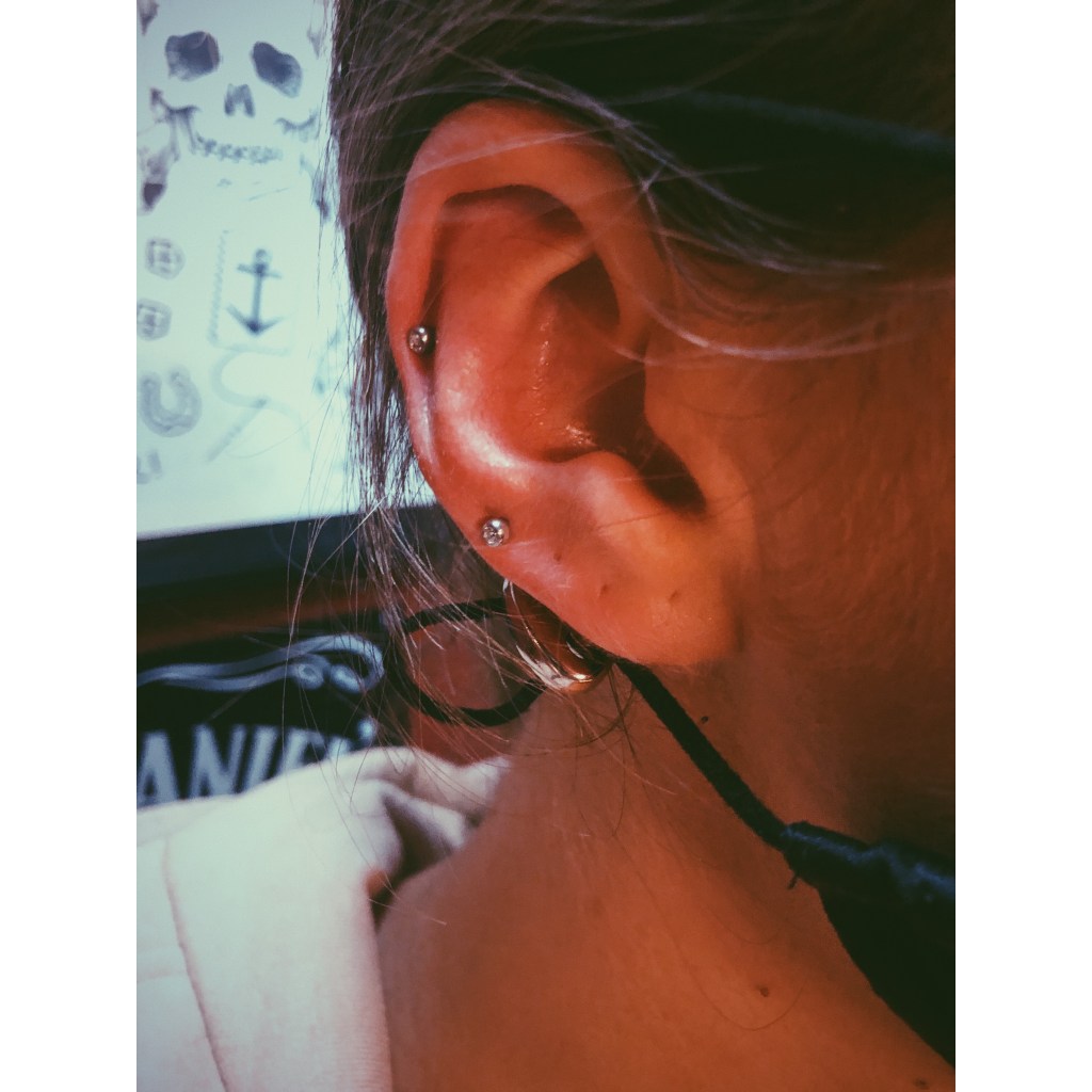 Alin’s double helix/upper lobe piercings – pierced by El Capitan @ Tattoo 13 in Soho.