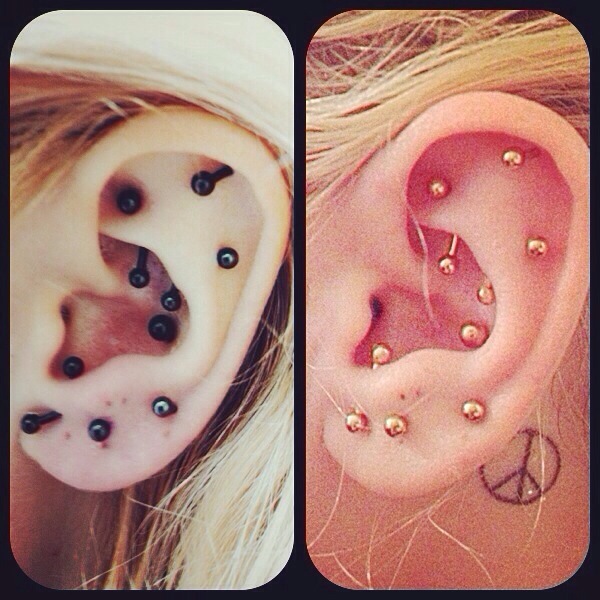 Various work on Jasmine… Healed septum, second lobes and a healing left side of the nose. The additional work here is a scaffold and right side of the nose to double up. Pierced over a course of time @ Shiva. Thank you for the continued trust, in doing what I do.